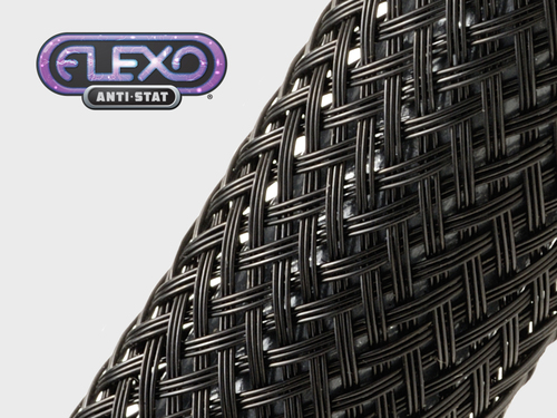 Flexo Anti-Stat is braided from 11 mil carbonized Nylon® monofilament yarn. Flexo Anti-Stat is designed to protect sensitive wiring from abrasion while shielding it from high frequency noise. Many successful applications have utilized Flexo Anti-Stat for maintaining clean video signals, interference filtering in pro sound environments, and RF filtering on power cables and outputs. Flexo Anti-Stat is also useful in static sensitive environments. Flexo Anti-Stat utilizes a patented carbonization process which infuses our braided sleeving with a microscopic carbon compound that is virtually indistinguishable from the base material. The result is a strong, long lasting jacket that is ready for the most sensitive applications.